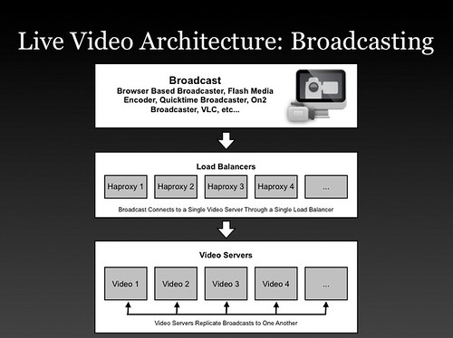 The future is live. The future is real-time. The future is now. That's the hype anyway. And as it has a habit of doing, the hype is slowly becoming reality. We are seeing live searches, live tweets, live location, live reality augmentation, live crab (fresh and local), and live event publishing. One of the most challenging of all live technologies is that of live video broadcasting. Imagine a world in which everyone becomes a broadcaster and a consumer of video streams, all in real-time (< 250 msec latency), all so you can talk and interact directly without feeling like you are in the middle of a time shift war. The resources and the engineering needed to make this happened must be substantial. How do you do that?