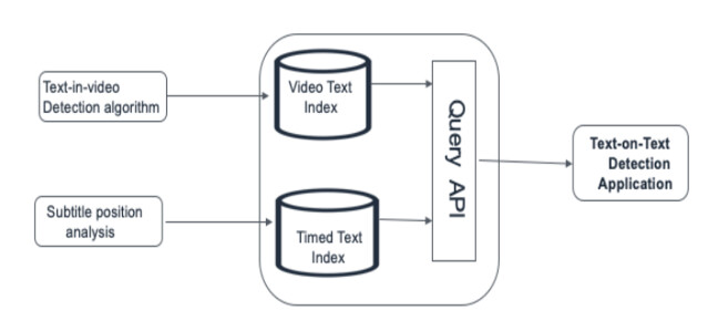 We can extend the existing Media Document solution (used for video subtitles) to store the video media information as well. We can then run Text-in-video detection and subtitle positioning algorithms on the media document data store and persist the results as separate indexes. After that, these indexes will be queried by the Text-on-Text detection application to identify any overlap, which will detect the text-on-text issue.