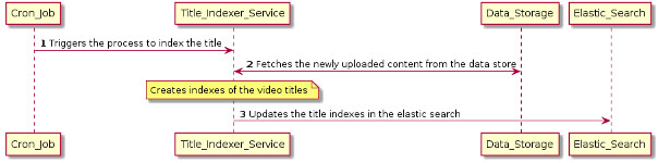 - The Title_Indexer_Service fetches the newly uploaded content from the data-store and applies the business rules to create indexes for the video titles.
