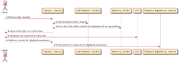 - The client places a request to playback a video which gets directed to the Playback_Service.