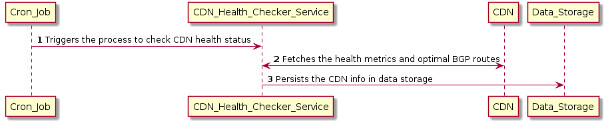 - The cron job triggers the microservice (CDN_Health_Checker_Service) responsible for checking the health of CDNs.