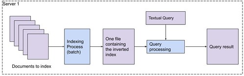 One “query processing” search process interpreting the binary file to compute the intersection of inverted lists for a particular query