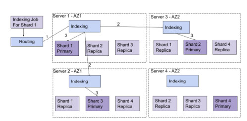 Schema 3: Example of an indexing operation for the shard 1 in the case of one index with four shards, a replication factor of three.