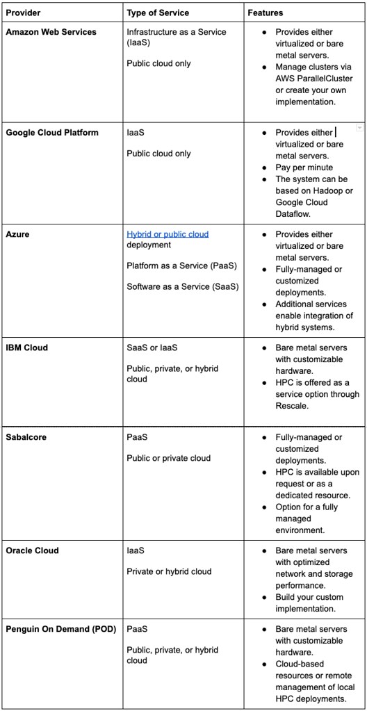 HPC in the Cloud: A Comparison